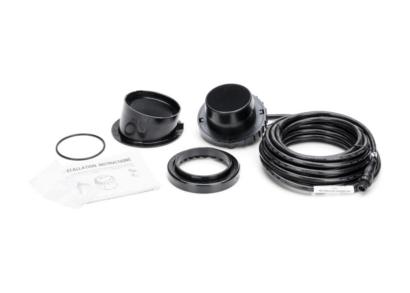 La sonde est livrée avec une socle de fixation en plastique, fixée à l’intérieur de la coque et remplie de liquide. La sonde est ensuite insérée dans le socle, afin que les faisceaux soient directement envoyés, pour des retours d’échos d’excellente qualité. Profondeur max : < 152 m